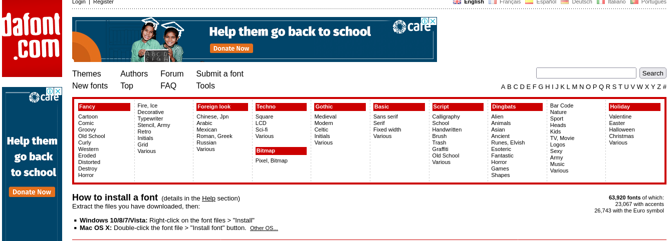 Another great website, FontZone, offers over 50,000 free fonts you can use for any purpose related to graphic design, including websites, documents, and graphics. When you visit Fontzone, you’ll see that there are various ways of classifying their selection of fonts in relation to alphabetical browsing, popularity, or by category. FontZone also includes a search feature which is handy if you already know the name of the specific style or font you want to download.